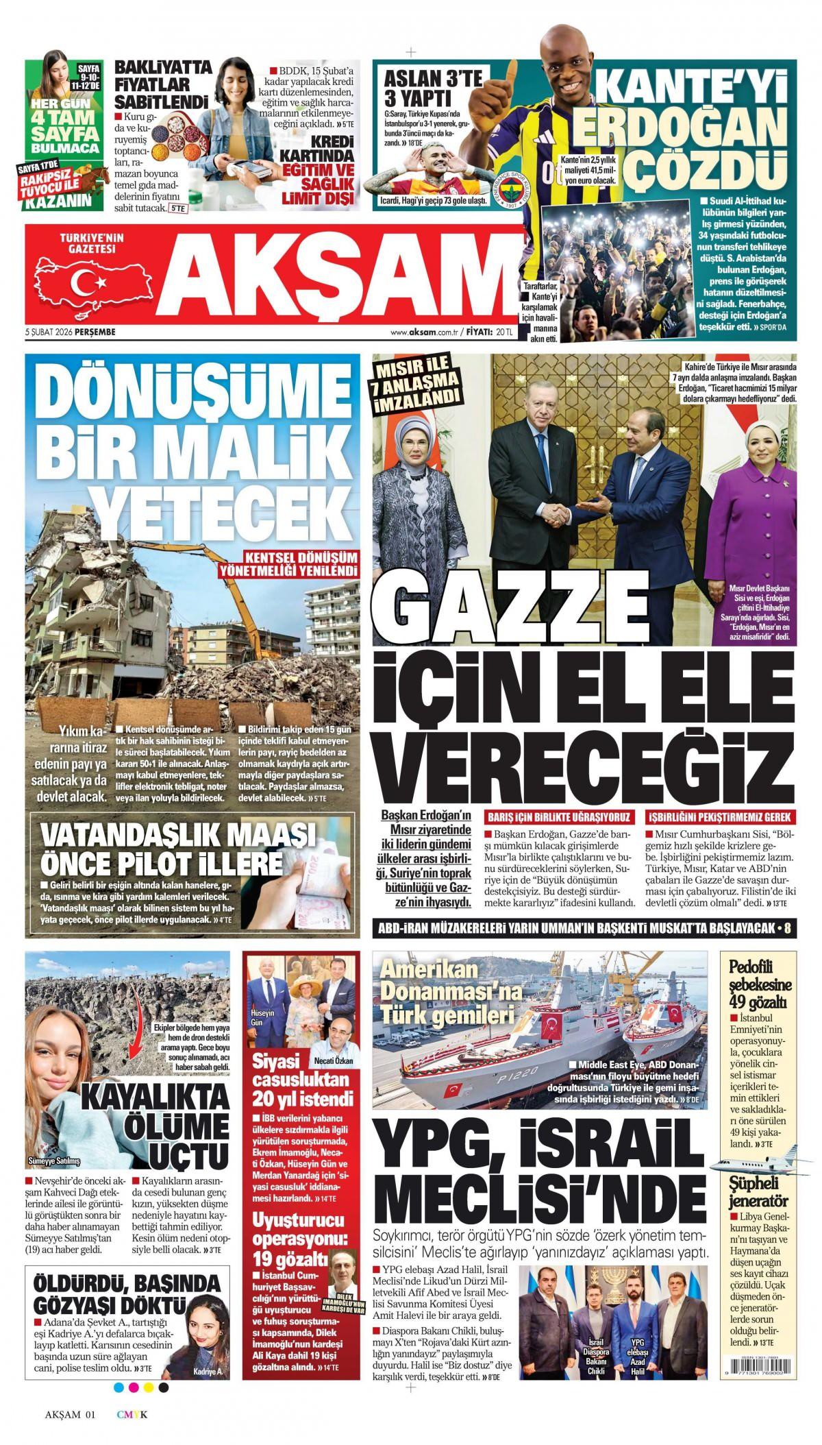 Akşam Gazetesi 6 Şubat 2026 Günü Gazete Manşetleri